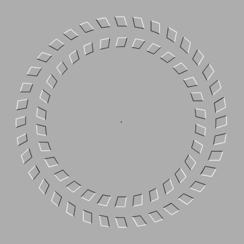 Pour cette illusion d’optique, il faut fixer le point central tout en s’approchant ou s’éloignant de l’image.